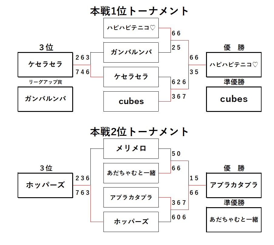 チーム『ハピハピテニコ♡』のメンバーさま優勝🏆おめでとうございます🎊 そして惜しくも準優勝🎉『cubes』のメンバーさまもおめでとうございます👏
